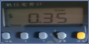 經過35分鐘的量測,一度電設定為3.5元時,用電費用為0.35元