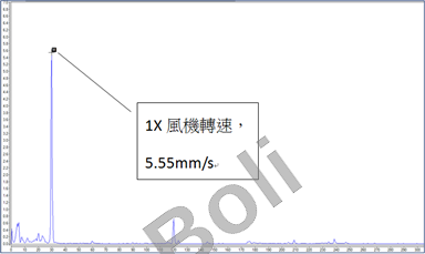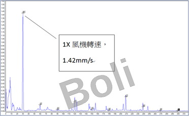 在風機驅動側水平向振動值達8.20mm/sRMS,在垂直水平向振動值為1.47mm/sRMS