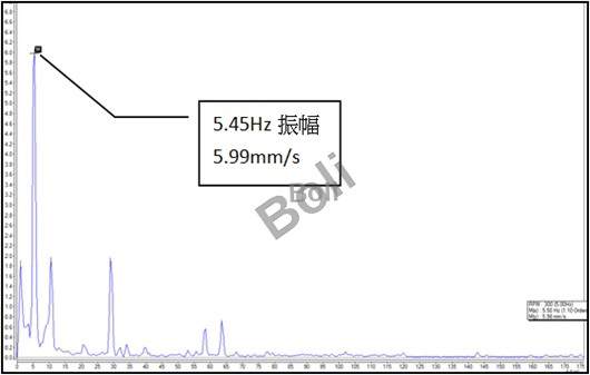 1. 現場巡檢人員使用「一般振動計」,振動總值量取的頻率範圍只有10~1,000Hz,所以顯示振動值低,是因為無法量測到5.45Hz的振幅。