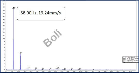 2. M2V有一倍頻(58.90Hz)諧波: 不對心及馬達底板鬆動訊號