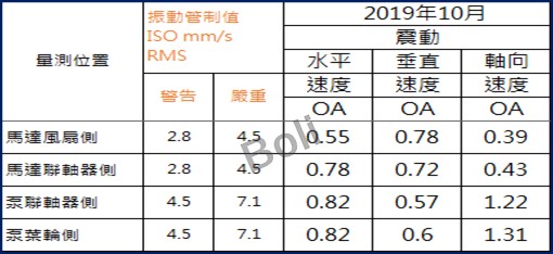 2.泵浦葉片與軸心有鬆動訊號。