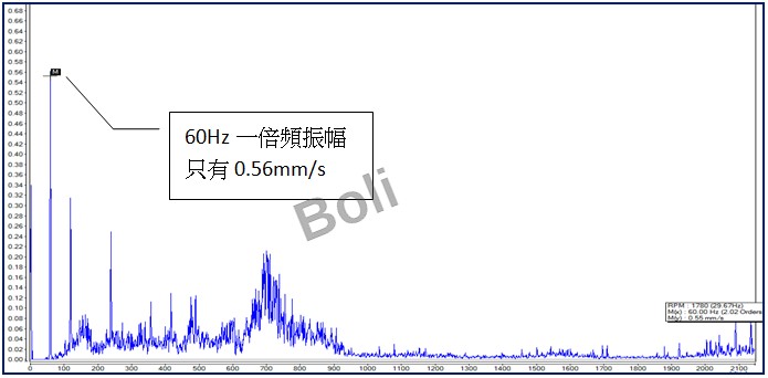 1. P1H有一倍頻(60Hz) 振幅只有0.47mm/s,振動值在標準內