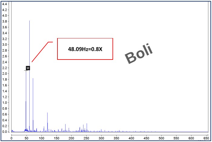 2. 風車被動側水平速度頻譜: (47.90Hz振幅約0.8倍頻)