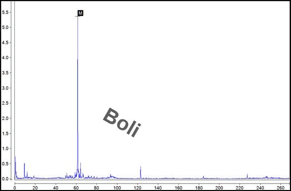 2. 球磨機本體轉速20.4RPM約0.34Hz,大齒輪齒數為178齒,齒輪嚙合頻率為: 60.52Hz,在速度頻譜發現:60.52Hz振幅高,但邊帶少及振幅不高,頻譜如第四項第2條之球磨機頻譜,判斷: 球磨機大齒輪無磨損問題;建議:請持續監測振動狀況。