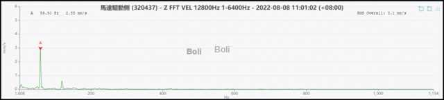 五、馬達驅動側速度頻譜分析: