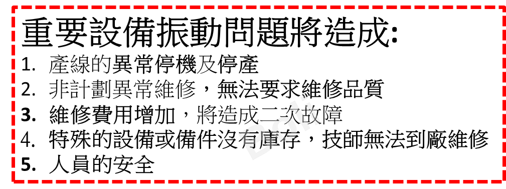 重要設備異常振動--也許是馬達對心、軟腳問題、轉子不平衡及結構與管路共振…等問題;重要設備送修或大修前的一次振動檢測,確認異常振動的潛在問題,以達省時省費用的解決問題!