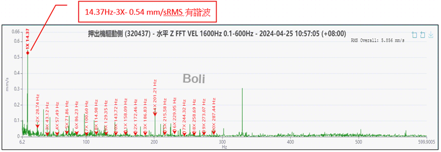 透過 Agen 無線振動溫度智能監測系統對押出機驅動側進行監測與分析: