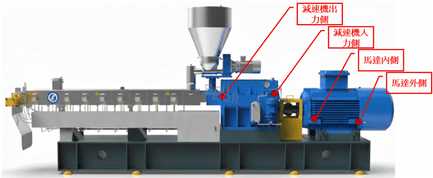 本案的監測對象為雙螺桿押出機(示意圖),關鍵監測點設置於傳動系統: