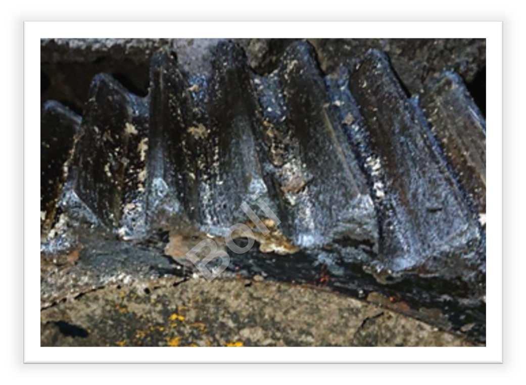 | 預知保養第一階段, 發現異常振動3.2mm/s及頻譜發現軸承磨損, 停車檢查發現滾珠磨損 |