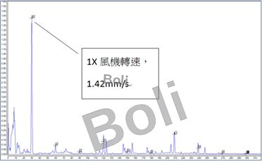 在風機驅動側水平向振動值達8.20mm/sRMS,在垂直水平向振動值為1.47mm/sRMS