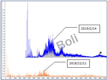 2.加速度譜在2~4KHz振幅已明顯升高。