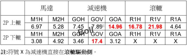 1. 振動值記錄表:2P上下轆