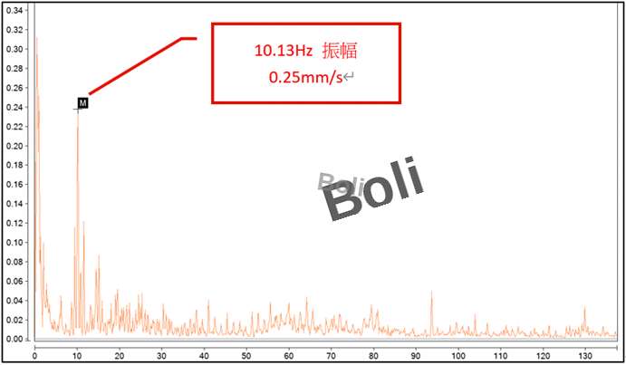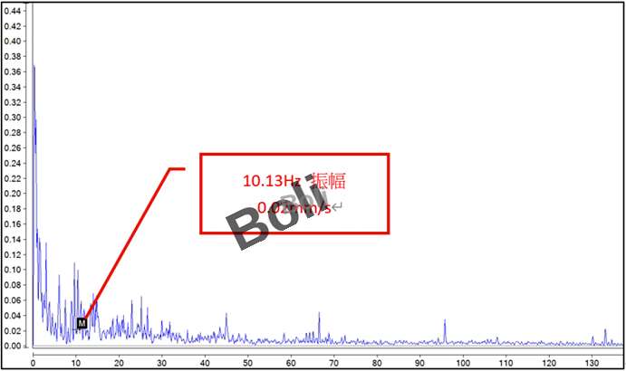 建議:使用高靈敏度傳感器及設定高解析度頻譜,每月定期檢測,如在低頻發現異常振幅升高,在每月定檢時做檢查並更換。