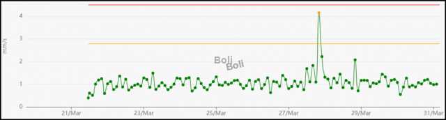 減速機出力側水平向,發現速度OA值由平均1mm/sRMS升至4.2mm/sRMS