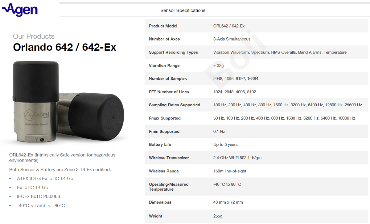 Agen ORL642-Ex 防爆型無線振動溫度智能傳感器特點