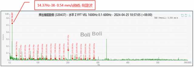 數據:14.37Hz-3X-0.54mm/s RMS存在諧波 。