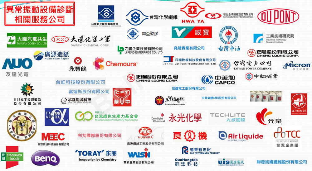 無線振動溫度監測系統主要內容為『預知保養振動檢測儀器銷售、振動診斷服務及原廠技師服務』,擘理科技為以下各大廠服務,卓有實績: